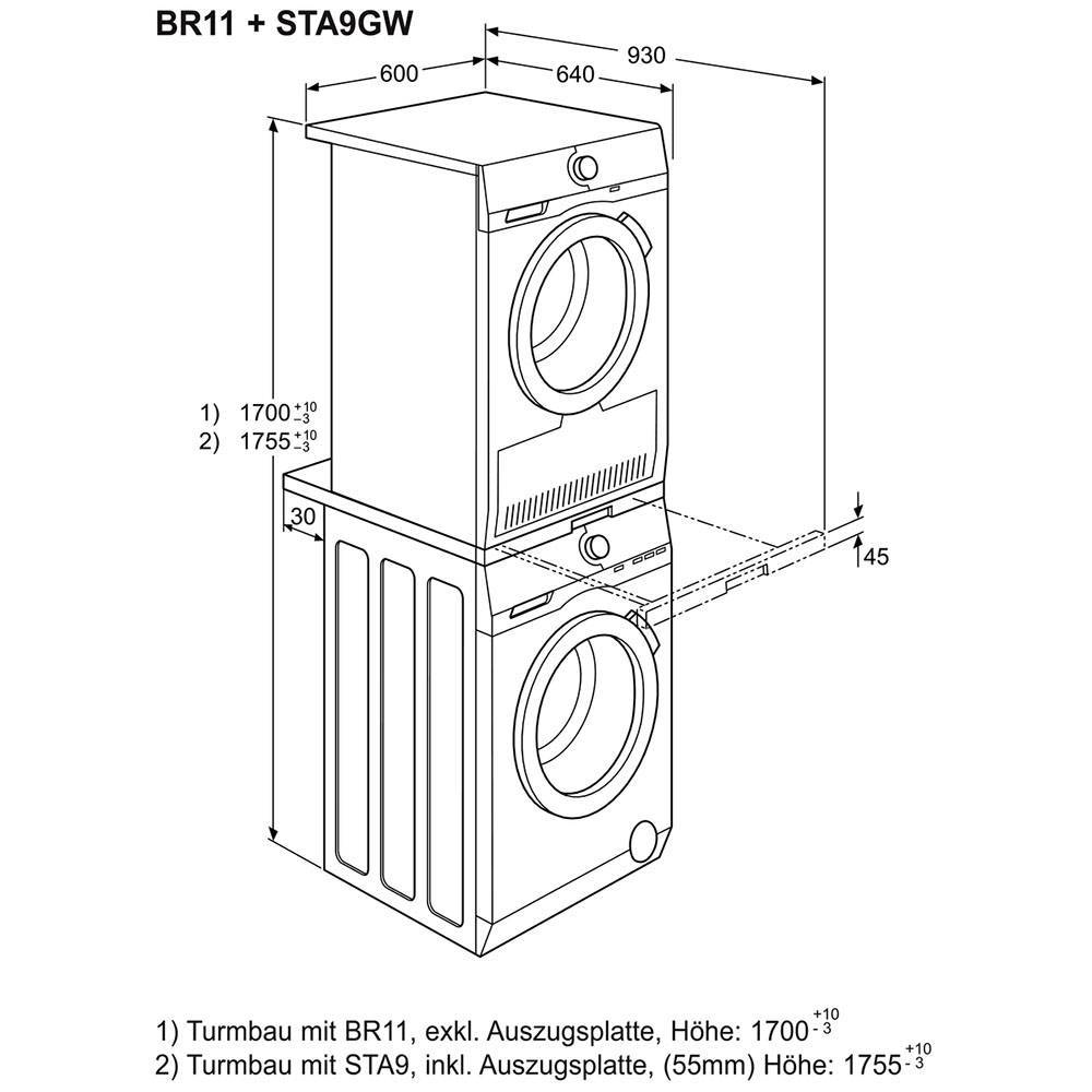 Наверх стиральной машины устанавливается подставка для сушильной машины. При всем этом меж подставкой и крышкой стиралки необходимо проложить резиновые уплотнители, которые будут гасить вибрацию техники. Подставка крепится особым болтами. После чего сушильная машина для белья ставится на подставку так, чтоб ножки машинки зашли в особые выемки. Выемки с наружной стороны запираются заглушками.