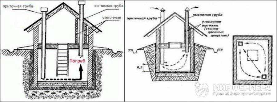 Монтаж принудительной вентиляции погреба с двумя трубами и с одной