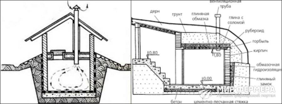 Так, воздух в погребе становится увлажнённым, однако не очень, вследствие чего продукты питания не поддаются никакому перемерзанию, температурный режим доходит до 4 градусов.