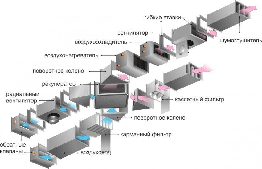 Технология проветривания при двух точках притока и оттока не имеет сложностей в монтаже воздуховодов.