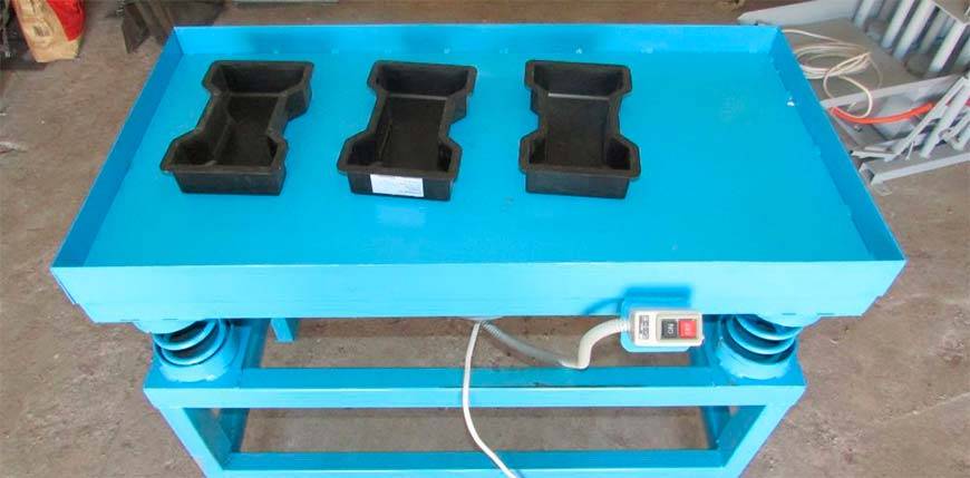 - столешница. Плоская плита (обычно из листового металла) обязательно снабжается бортиками. Это необходимо для того, чтобы установленные на нее формы с раствором при вибрации не «съезжали» со стола;