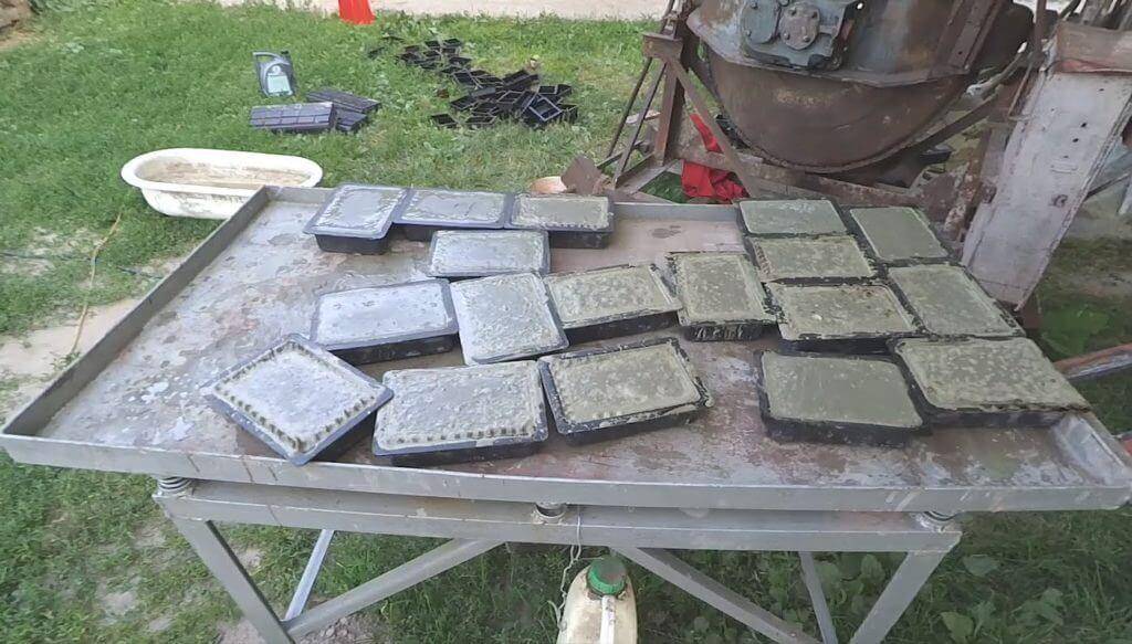 - Нужна точная дозировка бетонной смеси – это не только стабилизирует вибрацию, но и поможет избежать формовки плиток разной высоты.