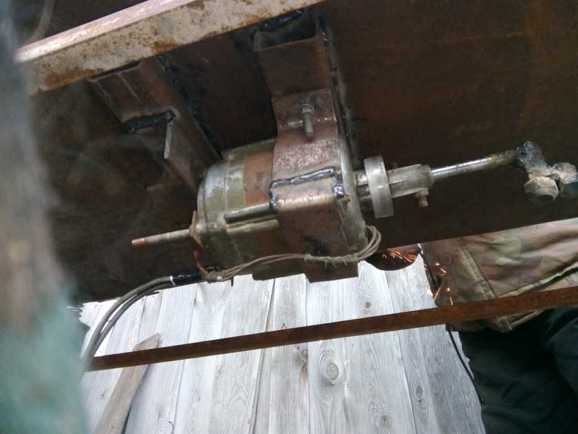 4. В центре подрамника приваривают кронштейны и крепят к ним электродвигатель. Его вал должен быть ориентирован вдоль стола.