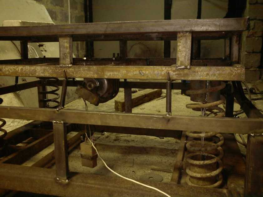 В качестве амортизаторов используют пружины от клапанов грузовика марки ЗИЛ, а функцию гнезд выполняют отрезки труб.