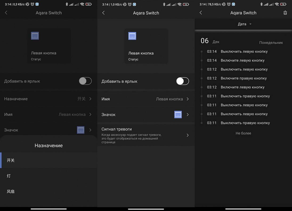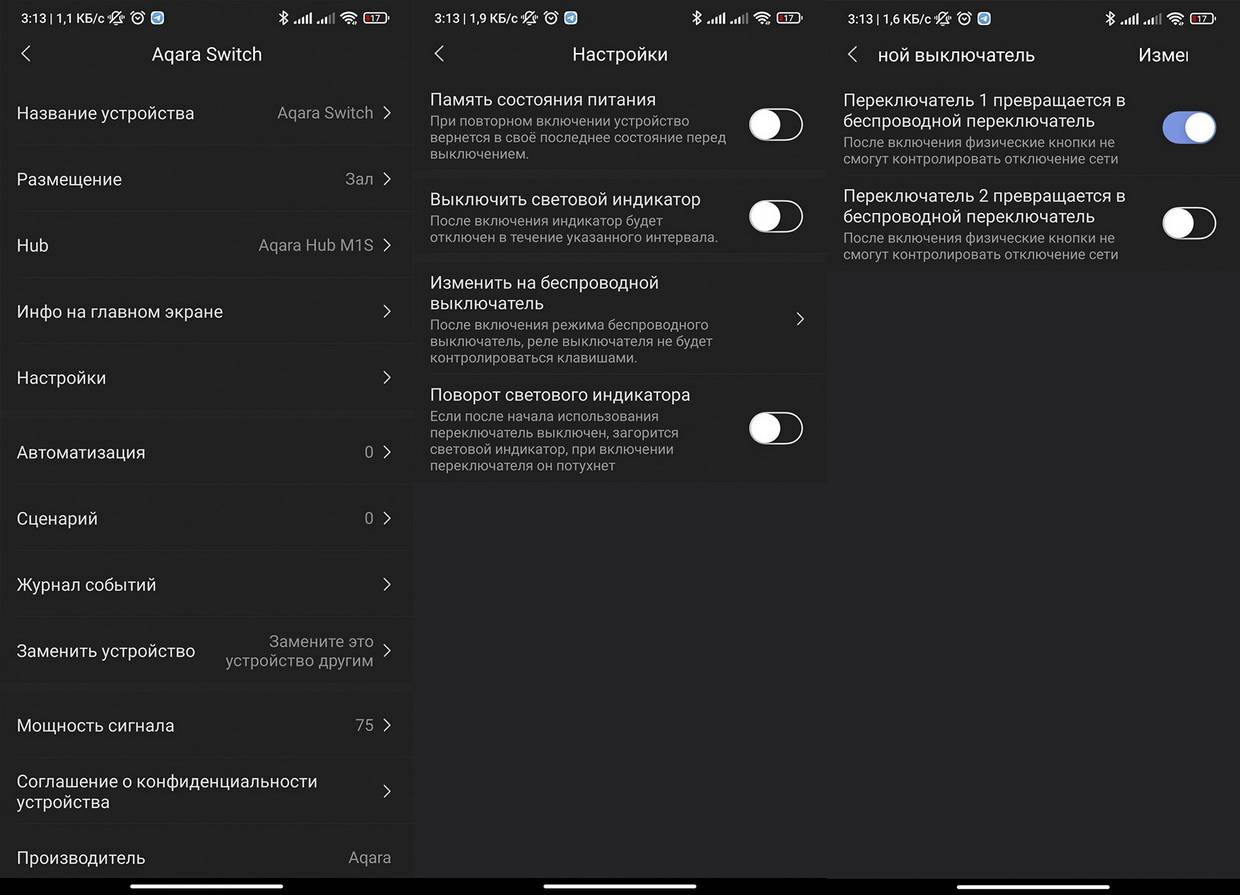 Все настенные проводные выключатели Aqara H1 могут играть роль как обычного выключателя, так и пульта управления, прямо в приложении установив желаемое действие, которое будет выполняться по нажатию.