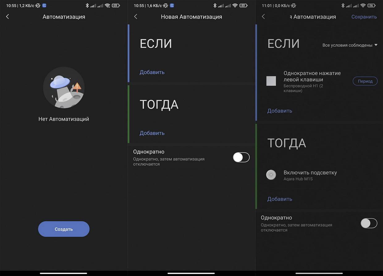 Все настенные проводные выключатели Aqara H1 могут играть роль как обычного выключателя, так и пульта управления, прямо в приложении установив желаемое действие, которое будет выполняться по нажатию.