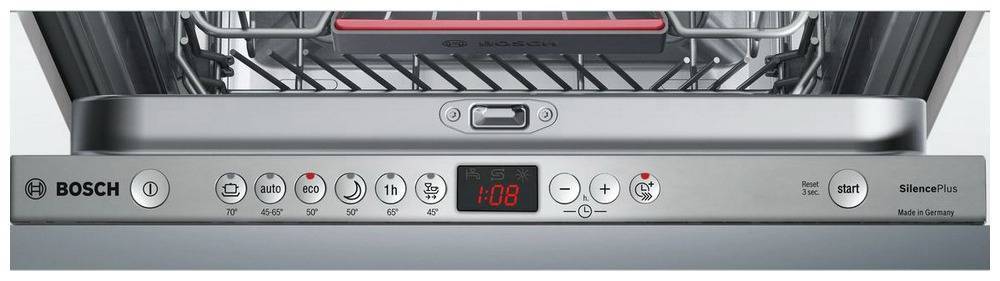 Полноразмерная встроенная посудомойка Bosch SMV88TX46E собрала максимальное число инновационных функций. Машинка оснащена такими смарт-технологиями, как цеолитная сушка, опции HygienePlus, IntensiveZone, Extra Dry, VarioSpeed Plus, датчиком загрузки. У нее удобное сенсорное управление с цветным дисплеем. При желании машинку можно подключить к телефону и дистанционно управлять ею. К отменному качеству мытья «Бош» добавил цеолитную и экстра-сушку. Она считается самой эффективной среди посудомоек. В целом, работу модели можно назвать безупречной. Она вымывает посуду до блеска с любым порошком. Но будьте готовы потратить время на настройку Wi-fi, подключение к смартфону обычно сложное.