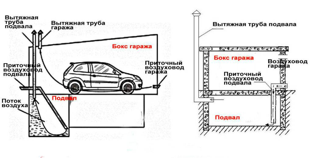Система вентиляции в подвале гаража. Схема воздухообмена погреба