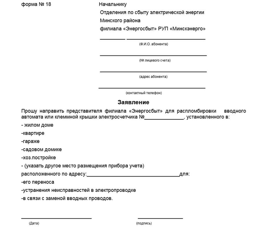 После установки нового счётчика придётся написать ещё одно заявление в Энергосбыт с просьбой опломбировать и принять в эксплуатацию новый счётчик потребляемой электрической энергии.