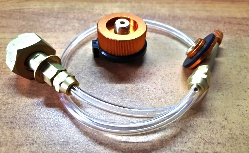 Далее необходимо найти подходящий адаптер для держателя баллона: источник газа и держатель для пустого картриджа. Адаптер покупается или собирается вручную.